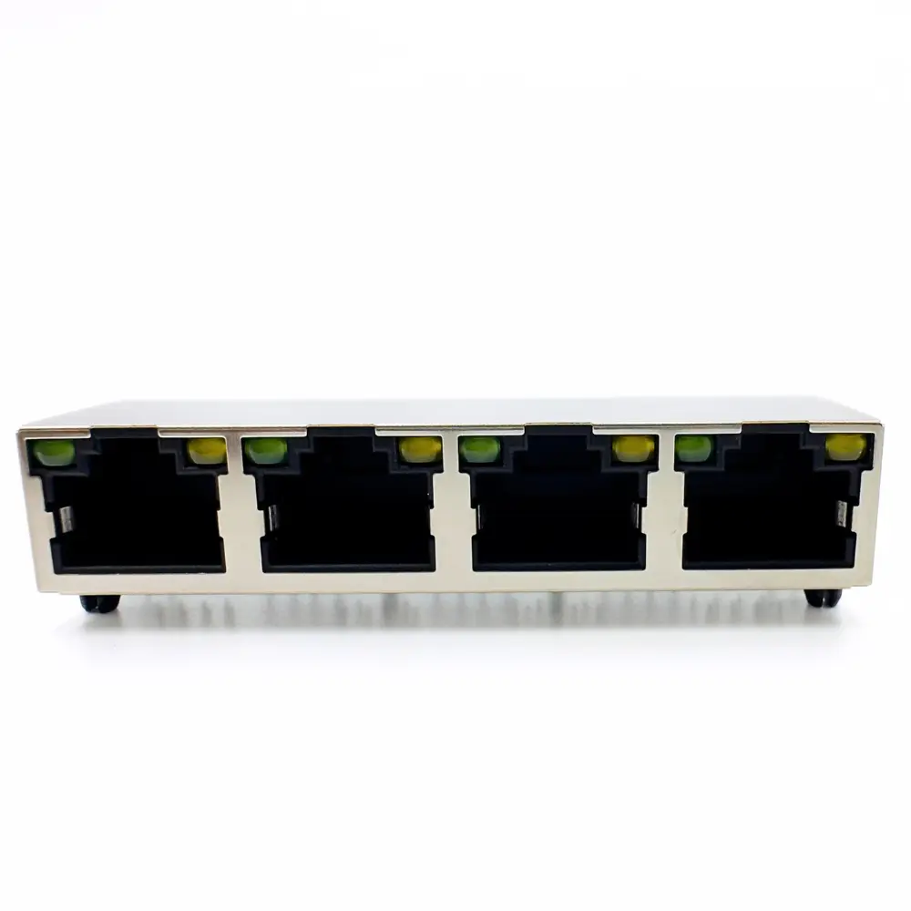 1×4 Multi-Port RJ45 Jack | Non-Magnetic,THT,Shielded,with LED | 8P8C Right Angle | Low profile