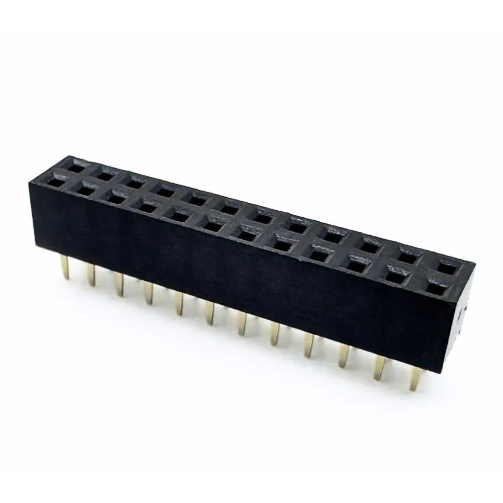 2.00 mm Dual-Row Female Header, Vertical THT (DW-FH-2200509WVNP) This female header designed for board-to-board interconnects. It features a vertical (WV, 180°) orientation with through-hole posts for robust PCB anchoring. The series supports per-row pin counts from 2 to 40 (resulting in 2×N total ways).