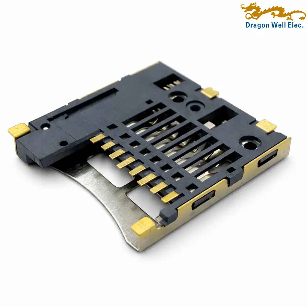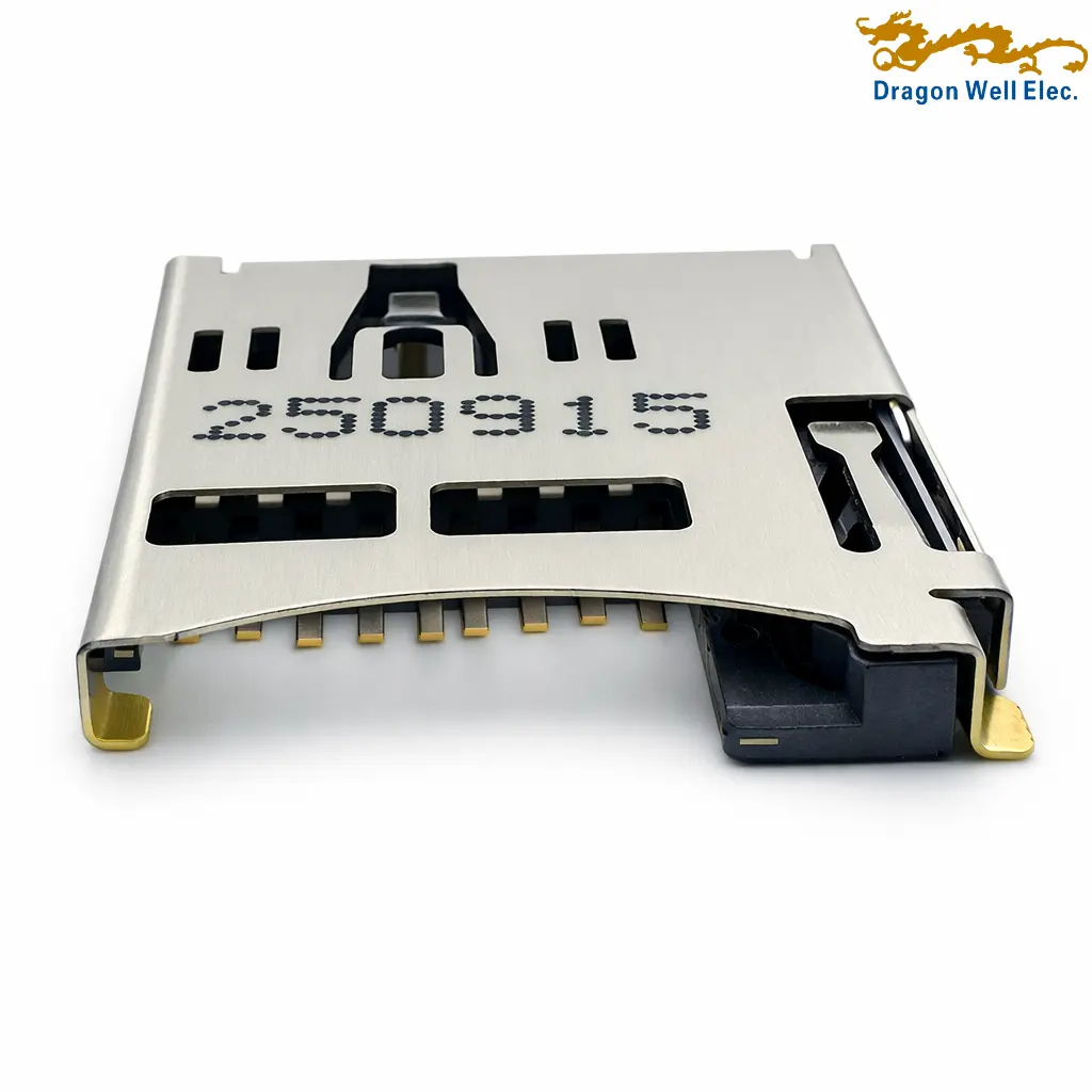 • Highlights: Micro SD card socket; 1.85H low-profile design; push-pull type; SMT mounting; card detect switch; 1.0A rated current; 30V rated voltage; 50mΩ max contact resistance; 1000MΩ min insulation resistance; 500V AC withstand; 10,000 cycles minimum; RoHS compliant