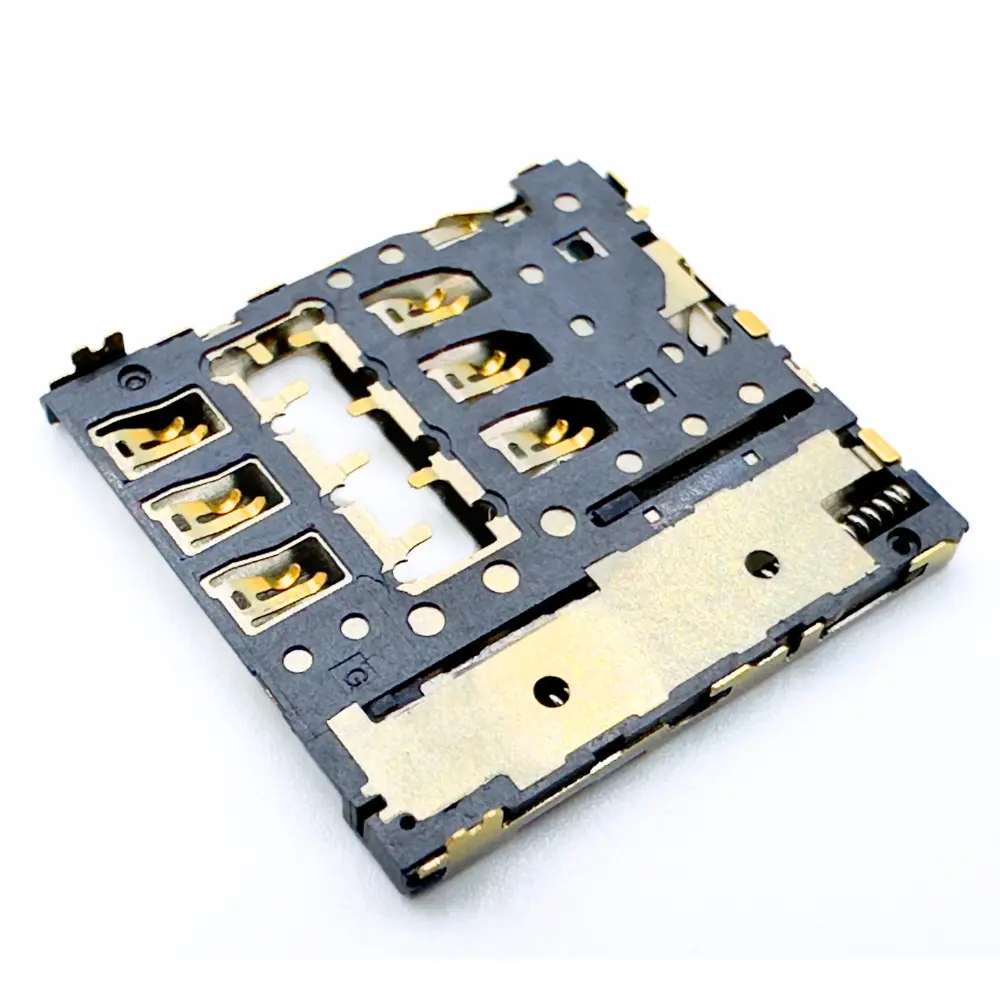 Micro SIM Push SMT Connector DW-SM-61409-XXTR-01 is a low-profile, top-mount Micro-SIM socket that combines a smooth push-push eject mechanism with an integrated card-detect switch and shell-to-ground contact for reliable presence sensing and EMI control.