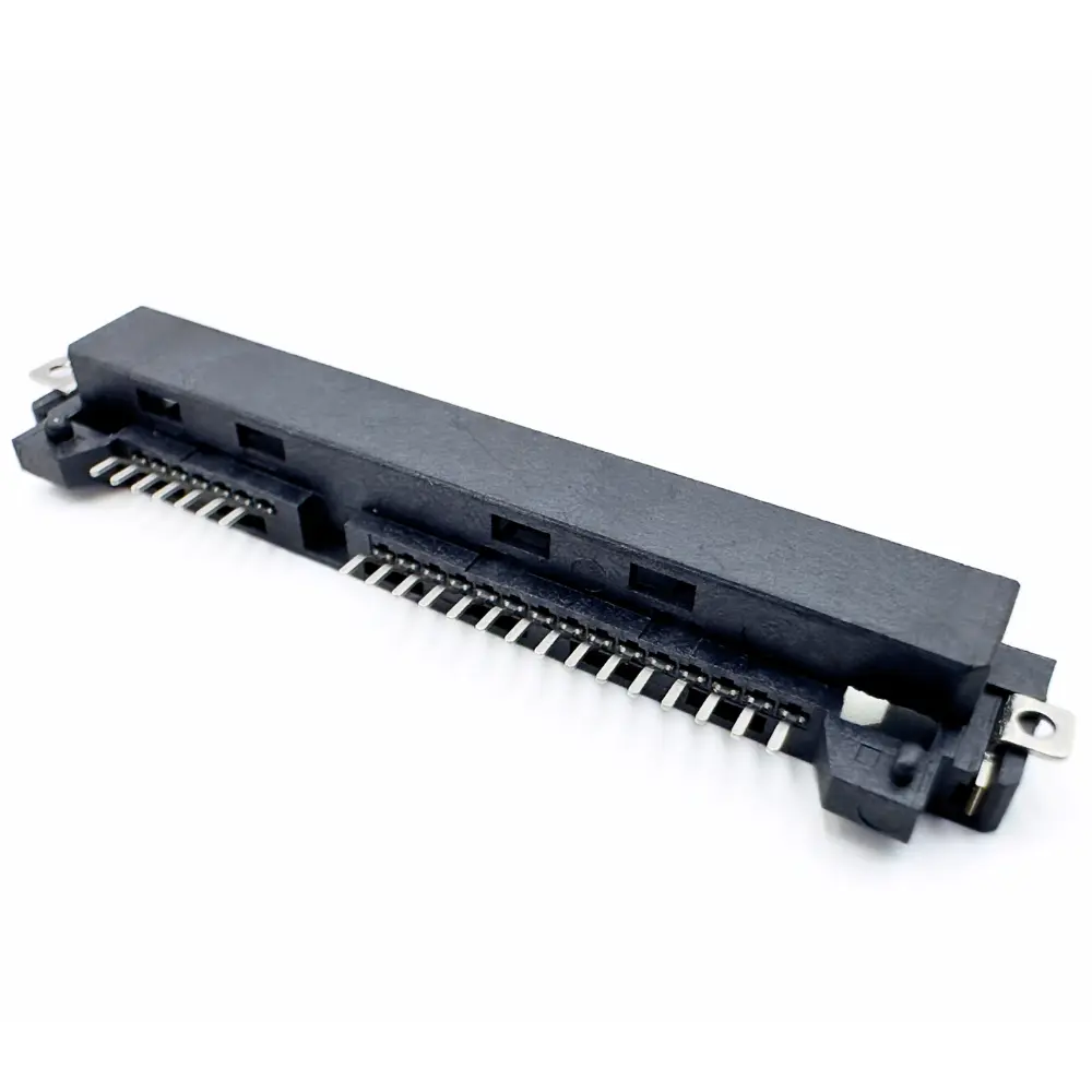 SATA 22P Right Angle SMT Receptacle 1.27 mm DW-SAT-S22501 is a compact board-mount socket for 22-pin SATA storage (7 signal + 15 power).